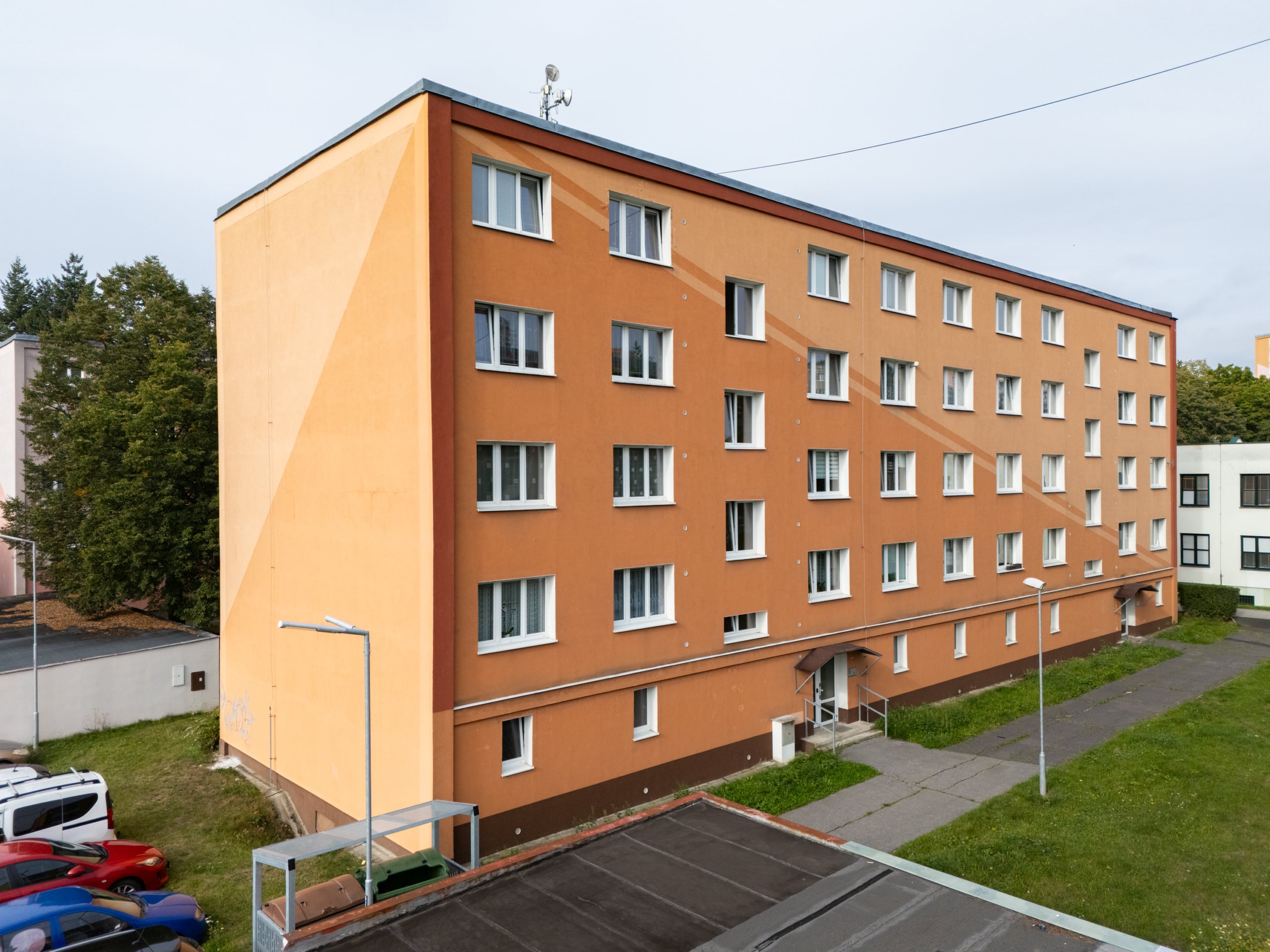 Byt se nachází v klidné lokalitě Chomutova (Vrchlického 4028) v přízemí panelového domu.