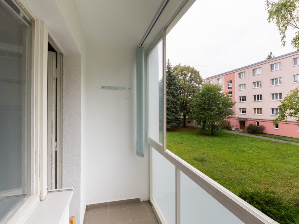 K bytu náleží balkón o ploše 4 m², který nabídne dostatek prostoru pro relaxaci či věšení prádla a taktéž sklepní kóje (1,5m2).