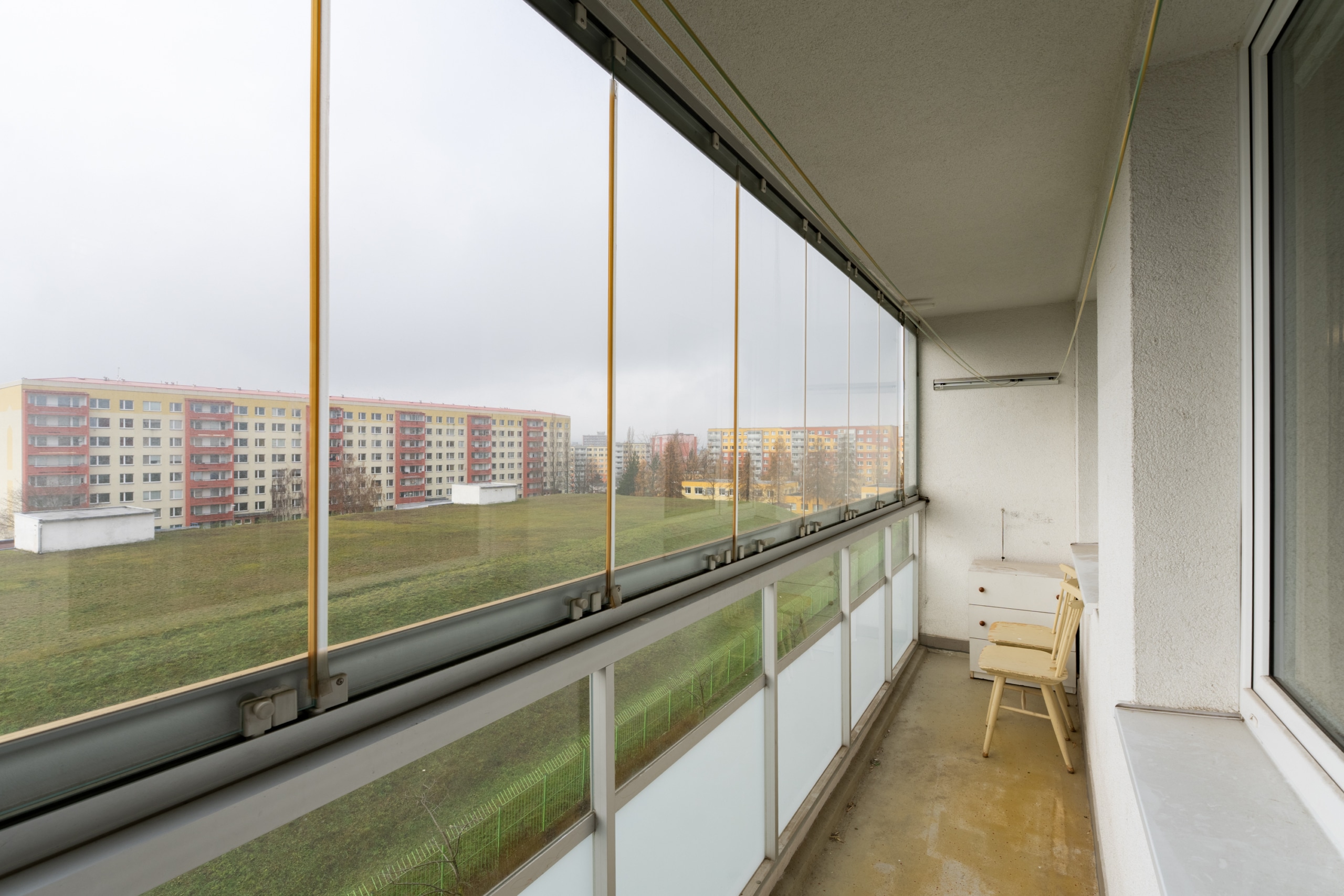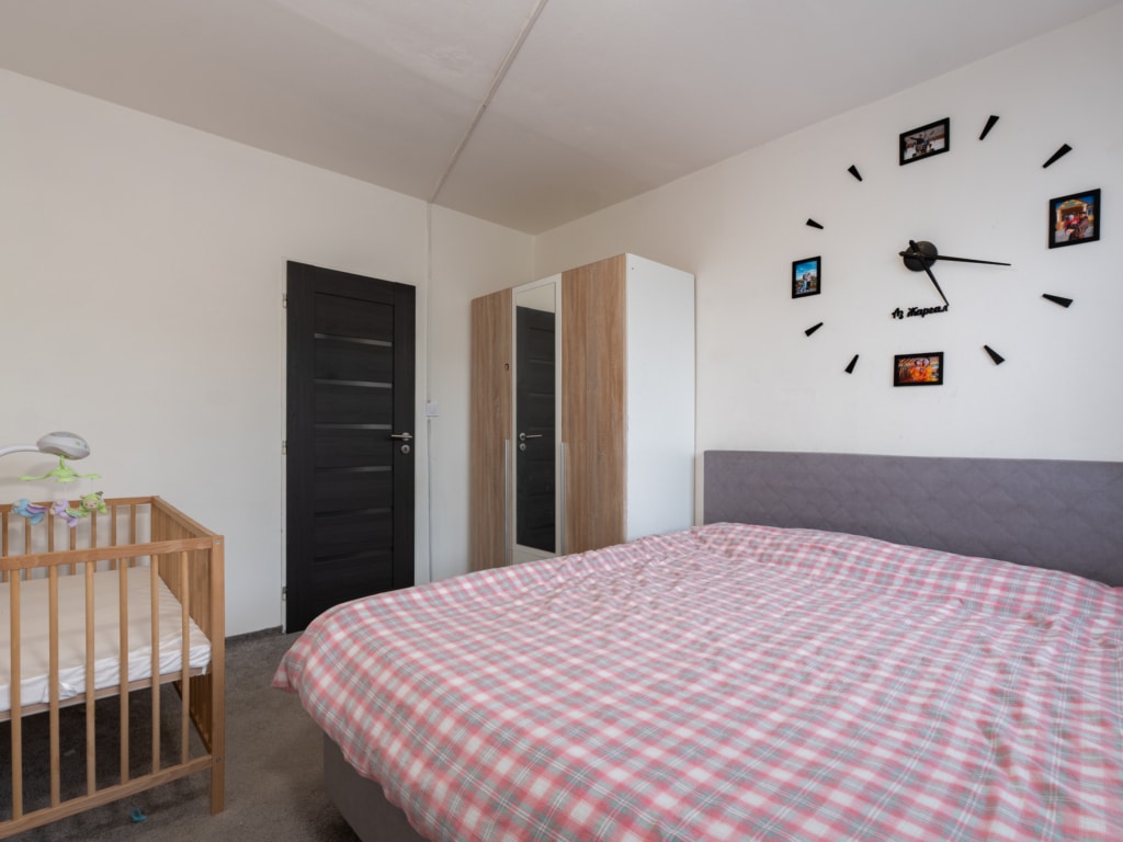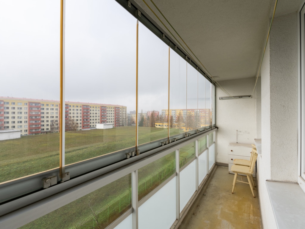 K dispozici je taktéž veliká šatna, prostorná zasklená lodžie s výhledem do okolí a sklep.
