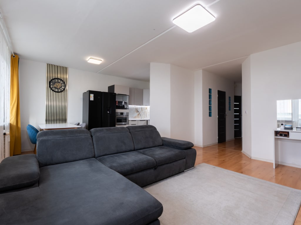 Tento prostorný byt o užitné ploše 70 m² se nachází ve 4.patře (5.NP) panelového domu po kompletní revitalizaci.