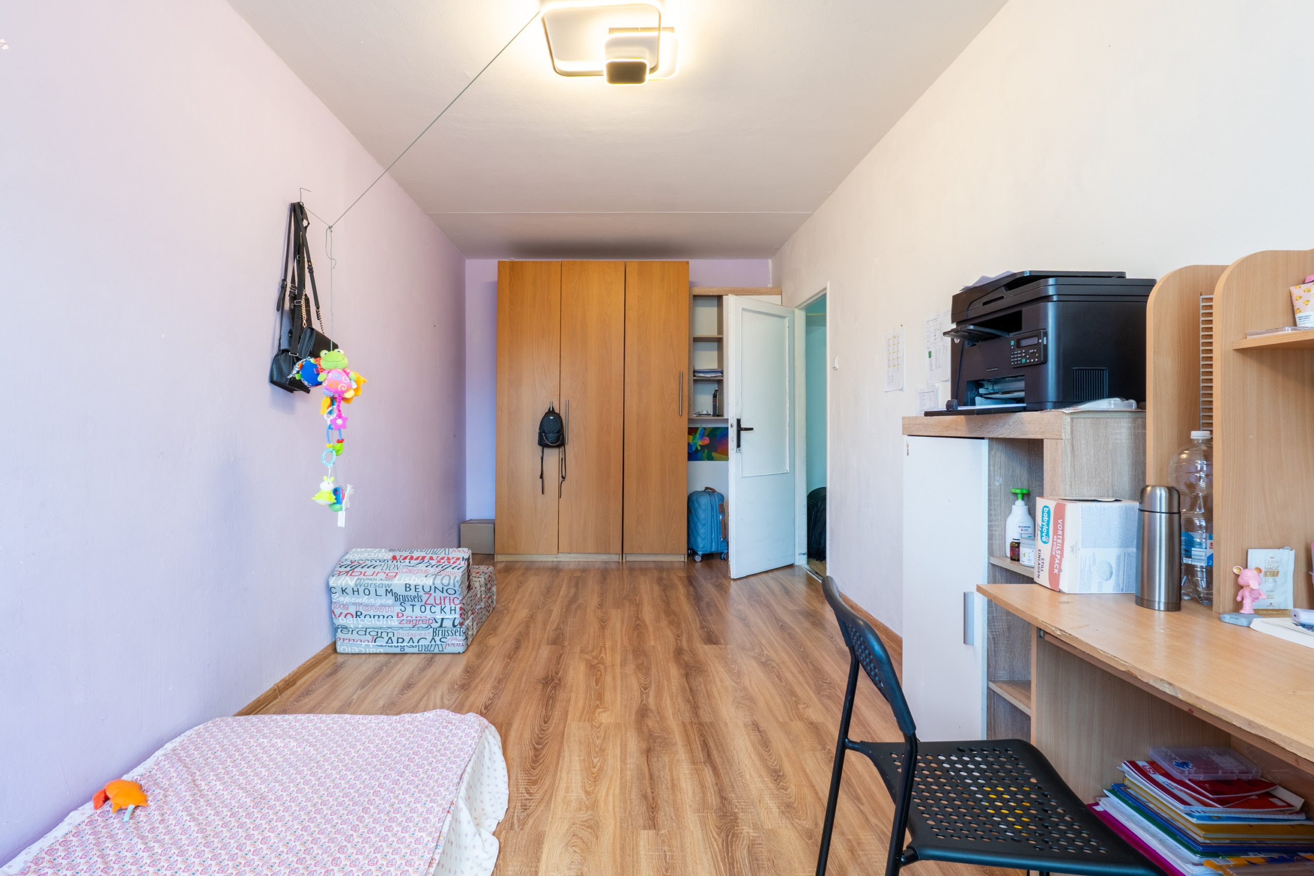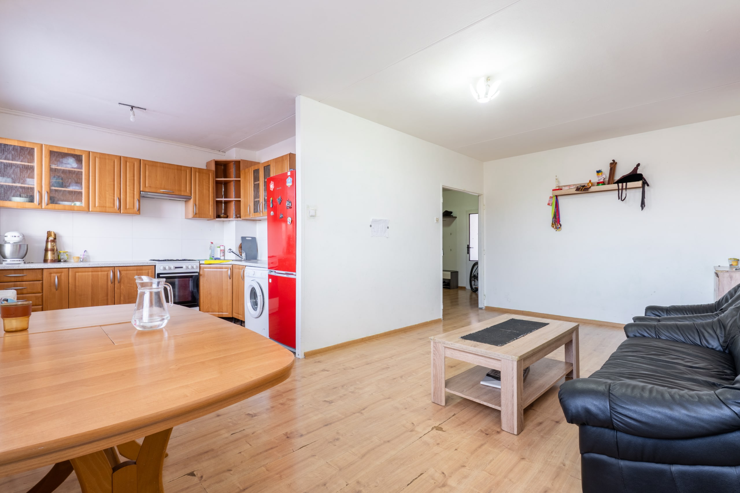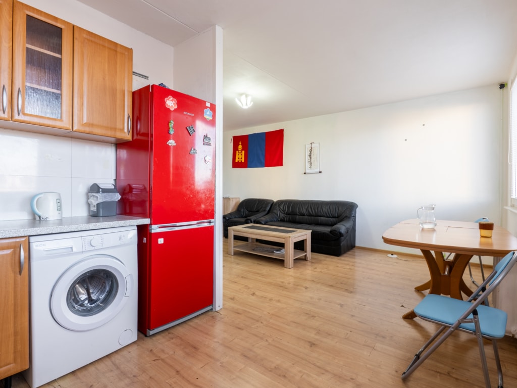 Tento pěkně zařízený byt o velikosti 72 m² se nachází ve 2. patře (3.NP) panelového domu a nabízí kromě obývacího pokoje a dvou ložnic také plně vybavenou kuchyň s jídelním koutem.